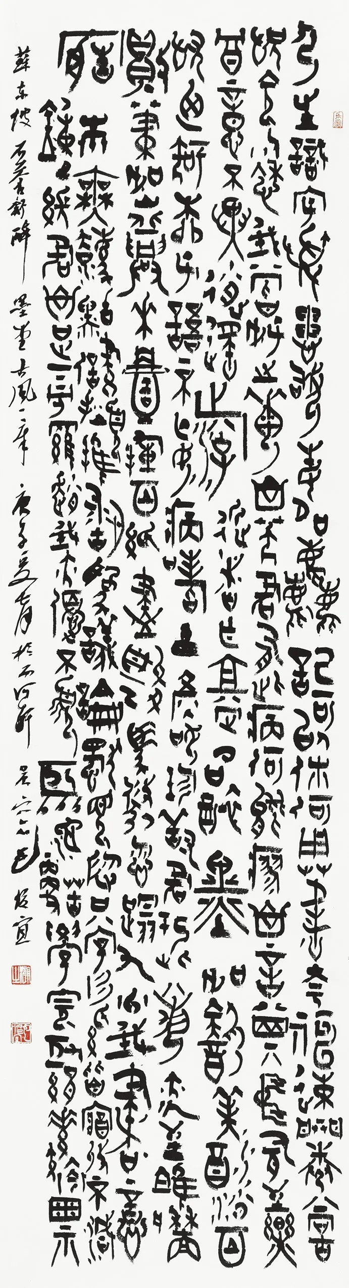 由中国书法家协会篆书委员会主办的篆写燕赵·中国书法家协会篆书委员会作品展今天在石家庄正式开幕。秦时李斯已叹“篆籀以前,眇邈不可得而闻矣”,遵循传统书法史的视角,篆书无疑是汉字演进过程中最为重要的一环,是书法史上奕奕生光的丰碑,后世隶草行楷无一不以篆书为滋乳。蔡邕《篆势》云“字画之始,因于鸟迹,仓颉循圣,作则制文。体有六篆,要妙入神。”足见篆书的庙堂地位。篆书是一个庞大的文字体系,它由甲骨文到金文再到石鼓文、春秋战国时期的列国文字,再到秦统一六国实现书同文的秦小篆,这些古老的文字,深深铭刻在华夏文明砥砺前行的漫漫长途,亦是我们追忆和破解先民智慧的密钥。它高古,神秘,玄远,与天地之大美相表里,与自然之精神相返还,充盈着最丰沛的人文信息,宣示着最独特最质朴也最神圣的大美!随着时代变迁,篆书艺术历经了夏商周秦的勃兴辉煌,汉代以后的停滞迷茫,清代中期后的繁荣复兴,到如今已进入多元探索的新时期,呈现出繁荣发展的良好态势。从艺术观念到审美取向,从取法资源到风格定位,从结构方式到笔墨情趣,当代书家,以不让前贤的时代担当,正努力塑造属于我们这个时代的经典范式。中国书法家协会篆书委员会以“立足当下,守正创新,正大气象”的艺术追求,用丹青妙手挥洒出一组组大气磅礴、气象万千的篆体书法视觉群。这些作品以鲜明的时代特色,独到的风格追求,方圆并举,虚实相生,枯润相继,水墨淋漓,充分借鉴其他姊妹艺术书体的表现形式,极大丰富了篆书的艺术表现力,使这一古老书体焕发出新的青春活力,独开时代审美新境界。燕赵大地,钟灵毓秀,地理环境和人文积淀形成了独有的燕赵墨韵和风骨:战国时期的中山王厝器,铁足铜鼎、夔龙饰刻铭铜方壶和胤嗣刻铭铜圆壶篆书铭文,摇曳多姿,端庄大雅,无声地诉说着神秘中山国的千年传奇;东汉“缪篆之祖”,元氏《祀三公山碑》,将秦篆汉隶圆融化一,书风错落古劲,滋养了近现代巨擘吴昌硕、齐白石;正定古城,隋碑凝墨发起秀,开唐代尚“法”书风之先河;赵郡唐篆宗师李阳冰的传世佳作《三坟记》《城隍庙碑》《谦卦铭》,劲力豪爽,翩然逸致,李白盛赞其“落笔洒篆文,崩云使人惊”。本届篆书委员会的各项活动在各位委员的鼎力支持下,取得了一定成绩和良好的社会反响,这次展览也是本届篆书委员会的最后一次集体活动,我们借此机会由衷感谢河北省各级单位、各界群众对这次展览的支持,更希望能以本次活动为新的高度和起点,以民族文化复兴为己任,让篆书书法艺术的弘扬与燕赵大地新时代发展的步伐同频共振,交相辉映。