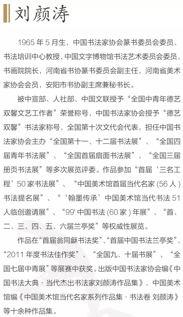 别署少孺,1963年生。现为中国书法家协会理事,中书协篆书委员会副主任,西泠印社理事,中国艺术研究院书法院研究员、篆刻院研究员,河南省书法家协会副主席兼篆书委员会主任,河南印社社长,郑州大学书法学院硕士研究生导师。